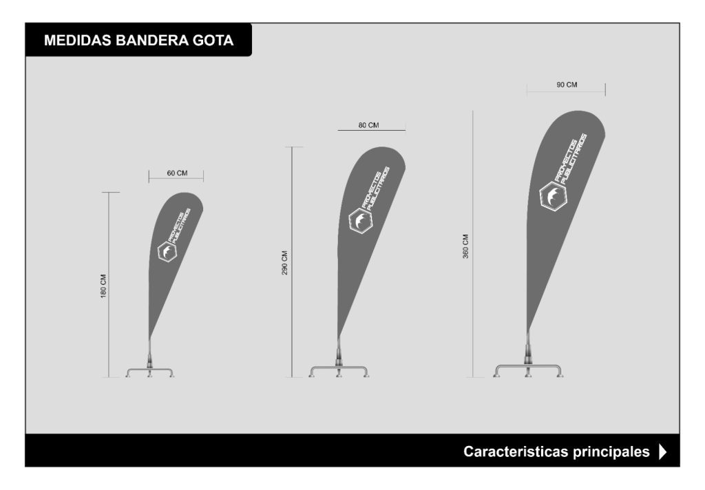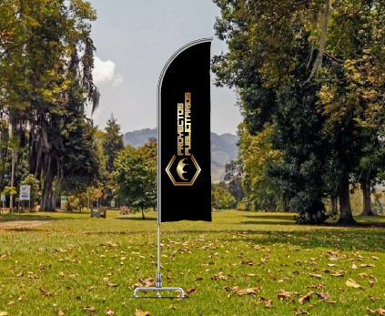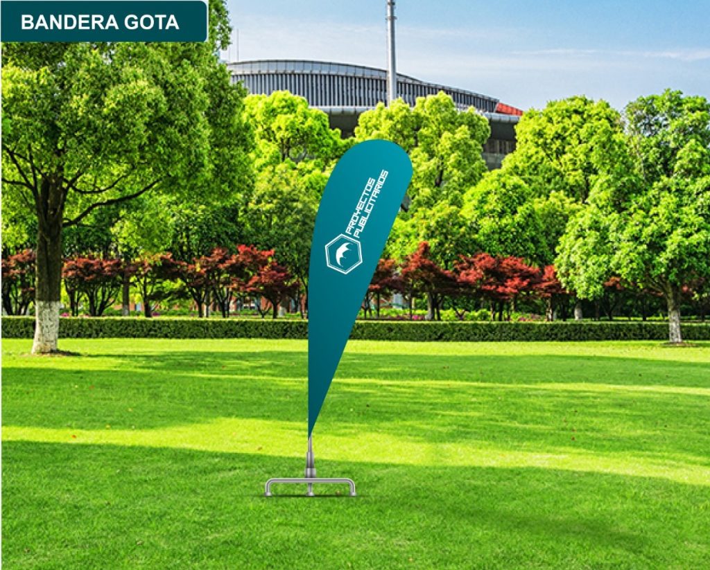 Una BANDERA es un soporte publicitario vertical que se utiliza para captar la atención en eventos, ferias o exteriores. Se compone de una tela impresa montada sobre un mástil flexible y una base que la mantiene tensa, asegurando su visibilidad incluso en ausencia de viento.
